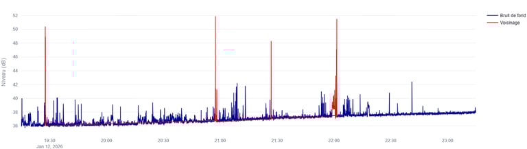 Nuisances de voisinage : Bruits de chocs, musique, commerce, pompe à chaleur... J'installe des sonomètres pour enregistrer la nuisance sur la durée et la caractériser suivant les normes et réglementation en vigueur.